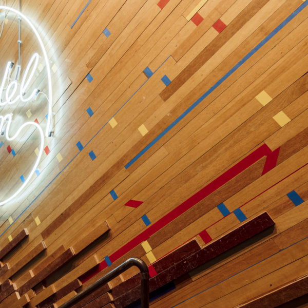Licht dat zorgt voor een ontspannen sportsfeer en neonkunst.